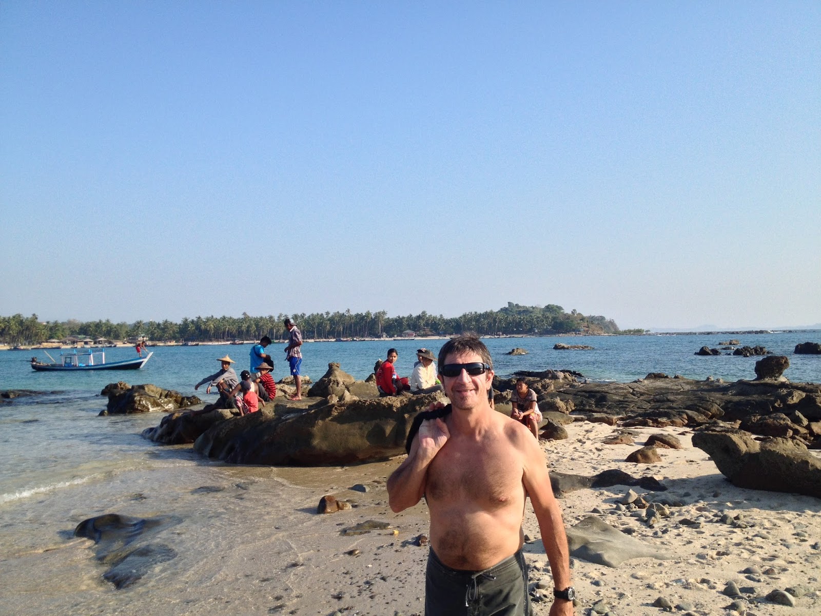 Cuatro noches. Nos alojamos en un pequeño hotel con encanto, Yoma Cherry Lodge (http://www.yomacherrylodge.com/index.html), en una playa "caribeña" preciosa con palmeras y separada de la más turística Ngapali Beach (de unos 4km.), y que tan solo compartíamos con otro hotel y tres "chiringuitos". La ubicación y la privacidad excelentes. Estábamos "solos", qué acierto. Aquí convencimos al dueño de un chiringuito –le dijimos que éramos chefs en España jjj- a que nos llevase a un mercado local a las 7,30am para comprar marisco fresco recién pescado (langostas vivas, enormes king prawns, tiger prawns, y gambas jjjj) y algunas verduras y que nos dejase preparar un salpicón de marisco y unas gambas al ajillo en su local. Precios muy bajos.